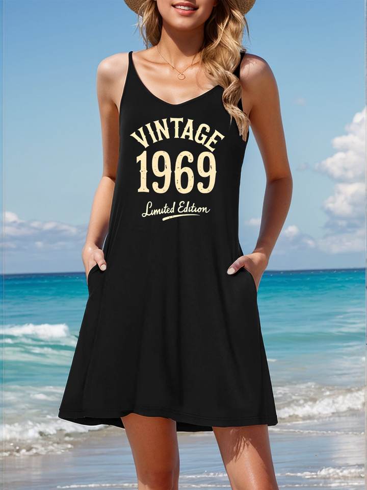 Women's U-Neck Strap Dress Personalized Sleeveless Dress, US Local POD
