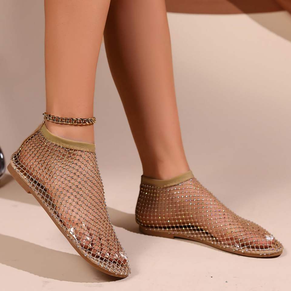 Ballerine in Rete Ultra Comode da Donna con Strass Colorati, Sandali a Rete con Tacco Basso
