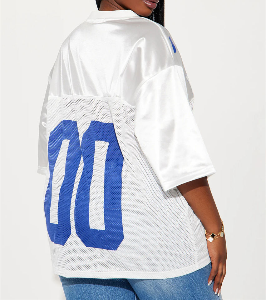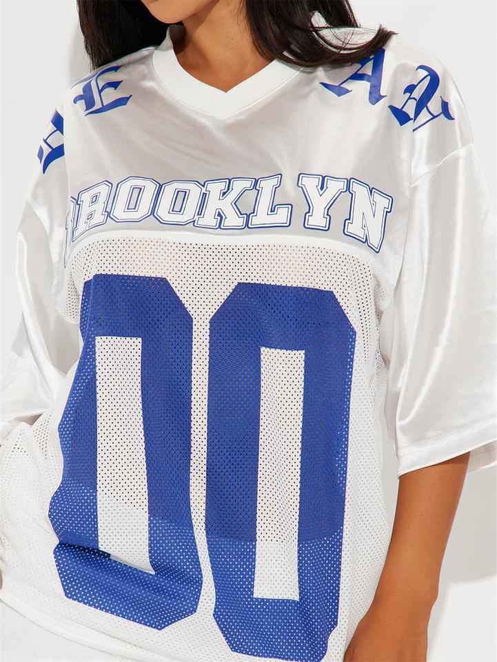 Maglietta da donna in Jersey bianco a mezza manica con stampa a scollo a V