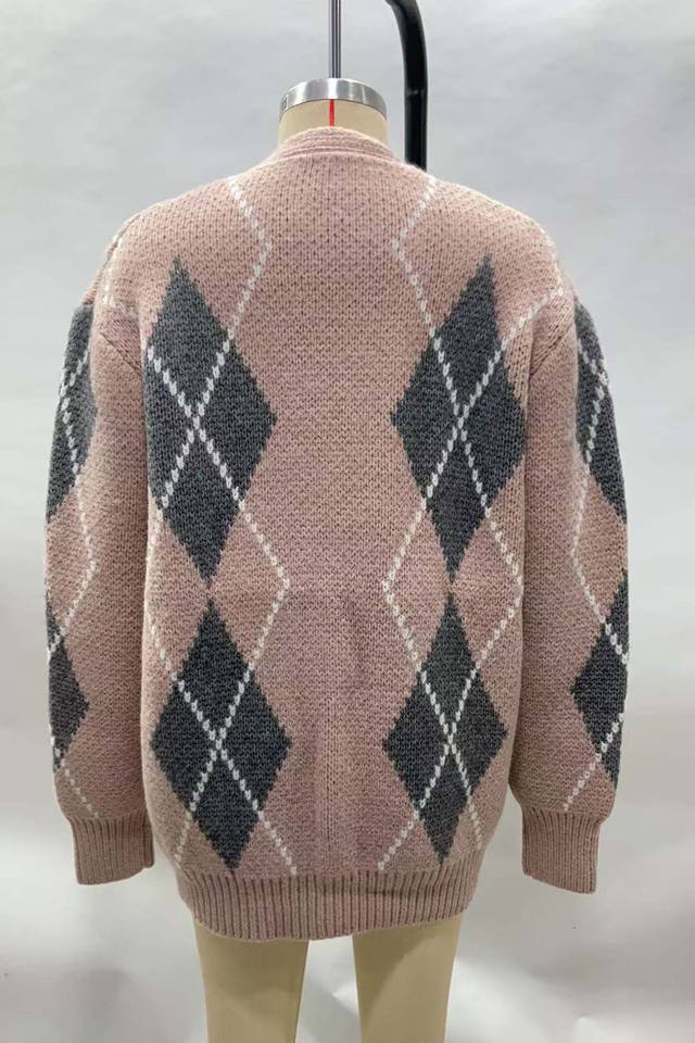 Women's V-Neck Sweater Casual Fashion Cardigan Button Single Breasted Front Argyle Design for Winter Online