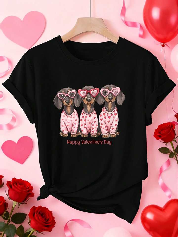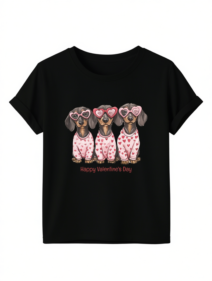 Women's Valentine's Day Dachshund Print T-Shirt Short Sleeve Round Neck Casual Fashion 100% Cotton Jersey Soft Comfortable