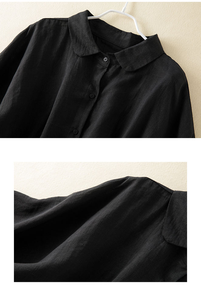 Women's Vintage Casual Loose Shirt Plus Size Breathable Crepe Cotton Linen Woven Solid Pattern with Button Decoration for Summer