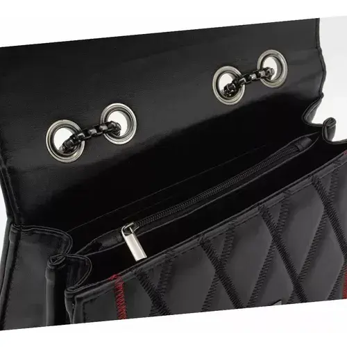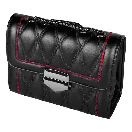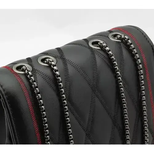 Women's Vintage Crossbody Bag Red Leather Edges Single Double Chains Decor Black PU Lining Summer Plain Fabric Design Closure