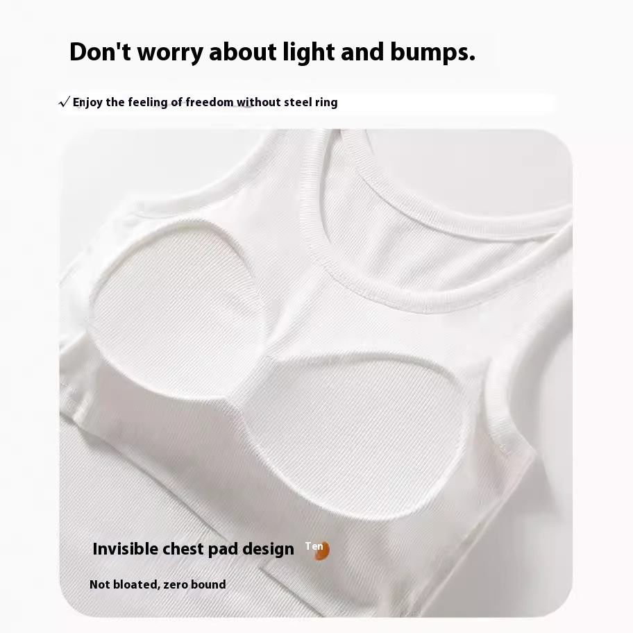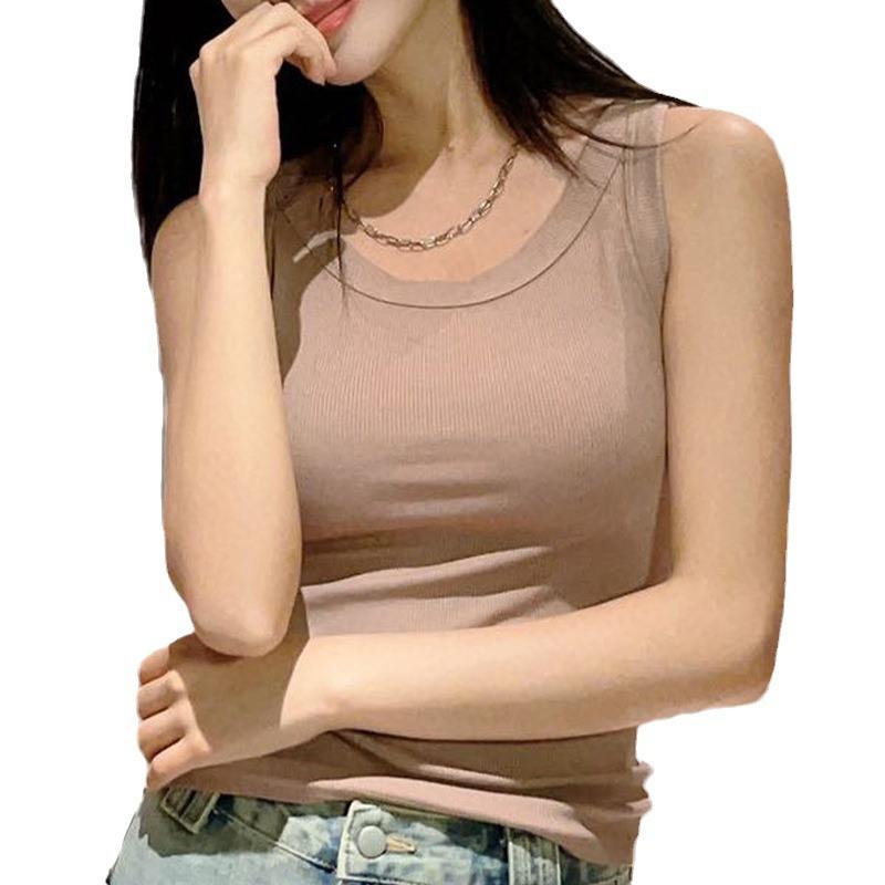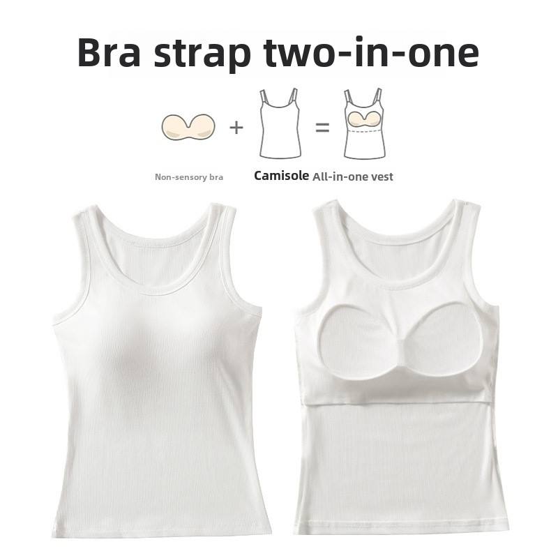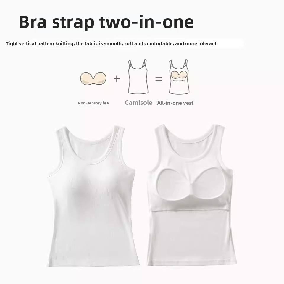 Women's Viscose Ribbed Cotton Camisole Anti-Exposure Chest Pads Non-Slip Cups Side Breast Coverage Top Solid Color Tank Tops