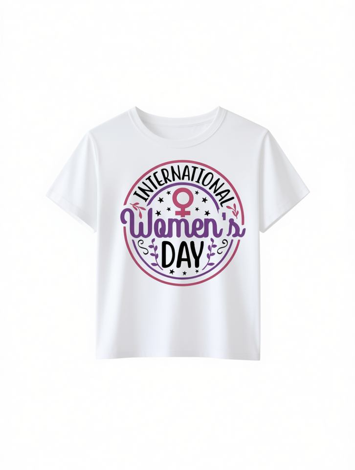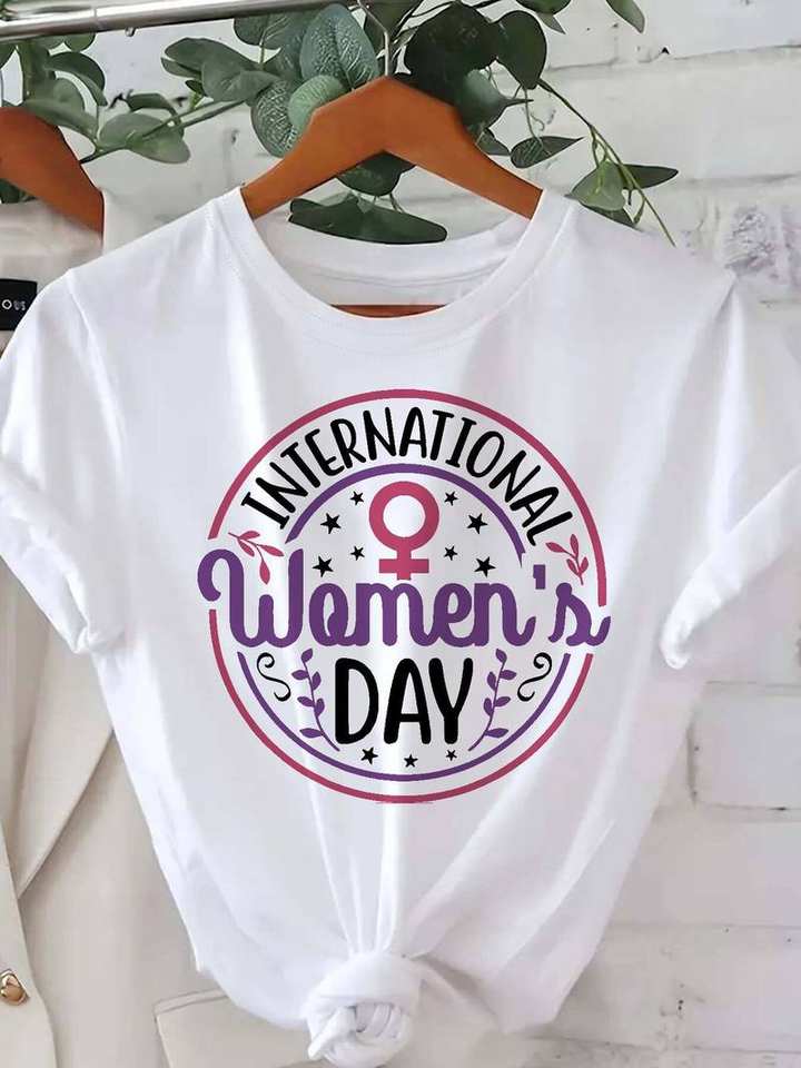 Women's White Casual Short Sleeve T-Shirt International Women's Day Graphic Print Round Neck Comfort Fit 100% Cotton