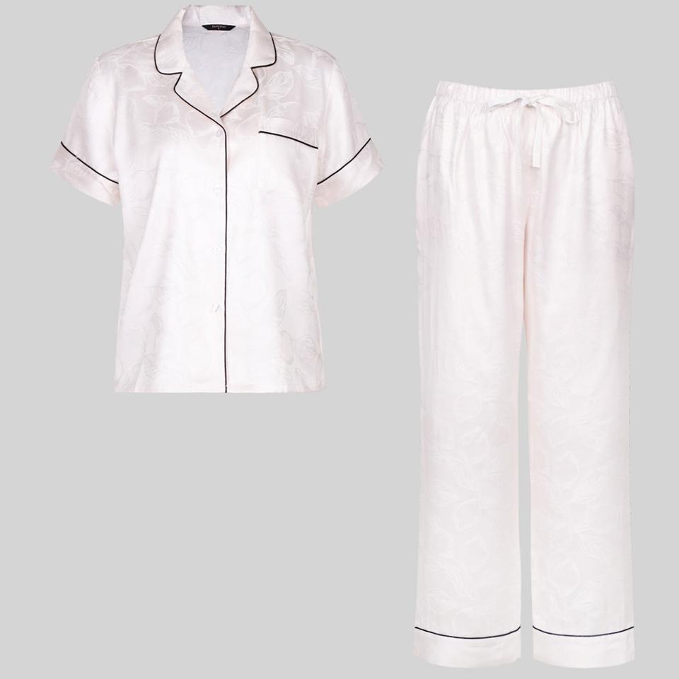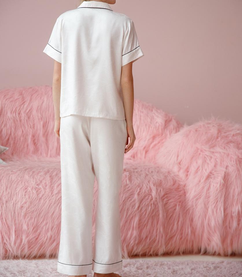 Women's White Digital Printed Viscose Polyester Blend Satin Fabric Pajamas Elastic Waist Quick Dry Breathable Luxury Elegant All