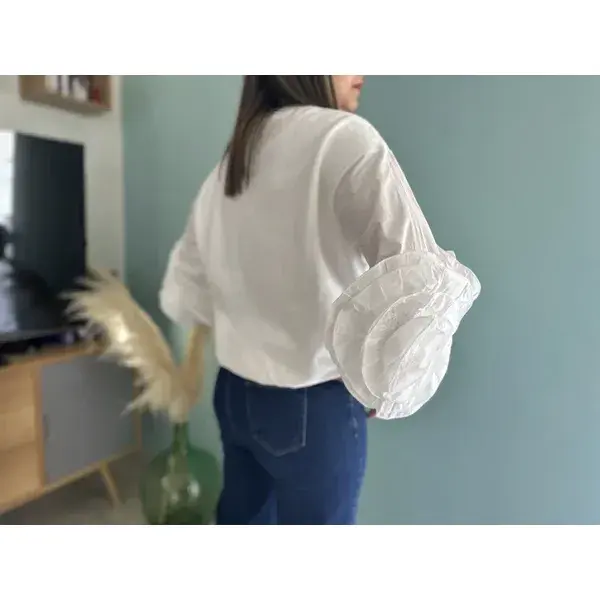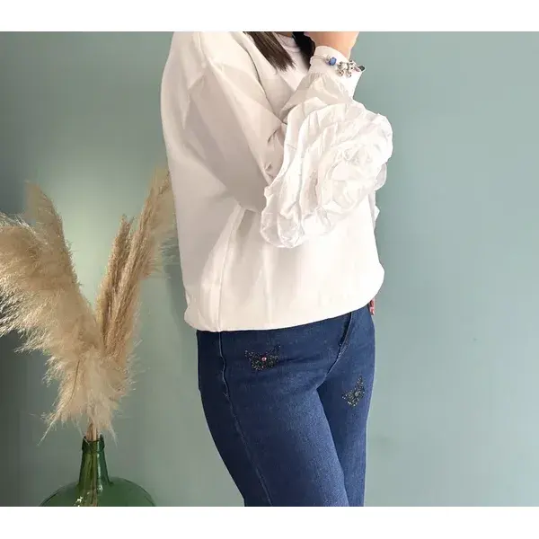 Women's White Mohair Shrugs XS Size Fashionable Thin Cardigan with Bow Collar and Appliques for Fall and Winter