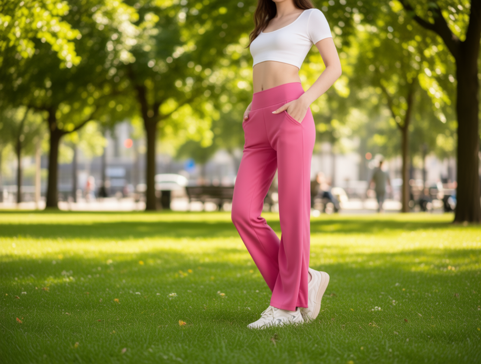 Pantaloni a gamba larga da donna a vita alta in maglia, lunghi, vestibilità ampia, tinta unita, traspiranti, casual estivi con tasche