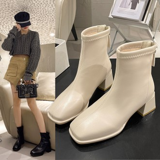 Women's Winter Fleece Ankle Boots Short Worker Boots with Fur in White Comfortable Shoes for Workers and Everyday Use