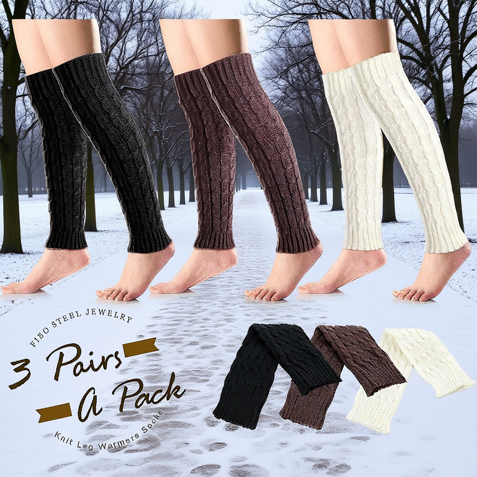 Fibo Steel Jewelry Women's Knit Leg Warmers 3 Pairs Thick Solid Color Winter Boot Cuffs