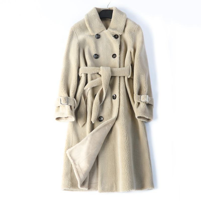 Women's Winter Long Coat Plaid Double Breasted Overcoat Teddy Furry Cashmere Fur Loosely Zipper Faux Shearling Lambs Wool