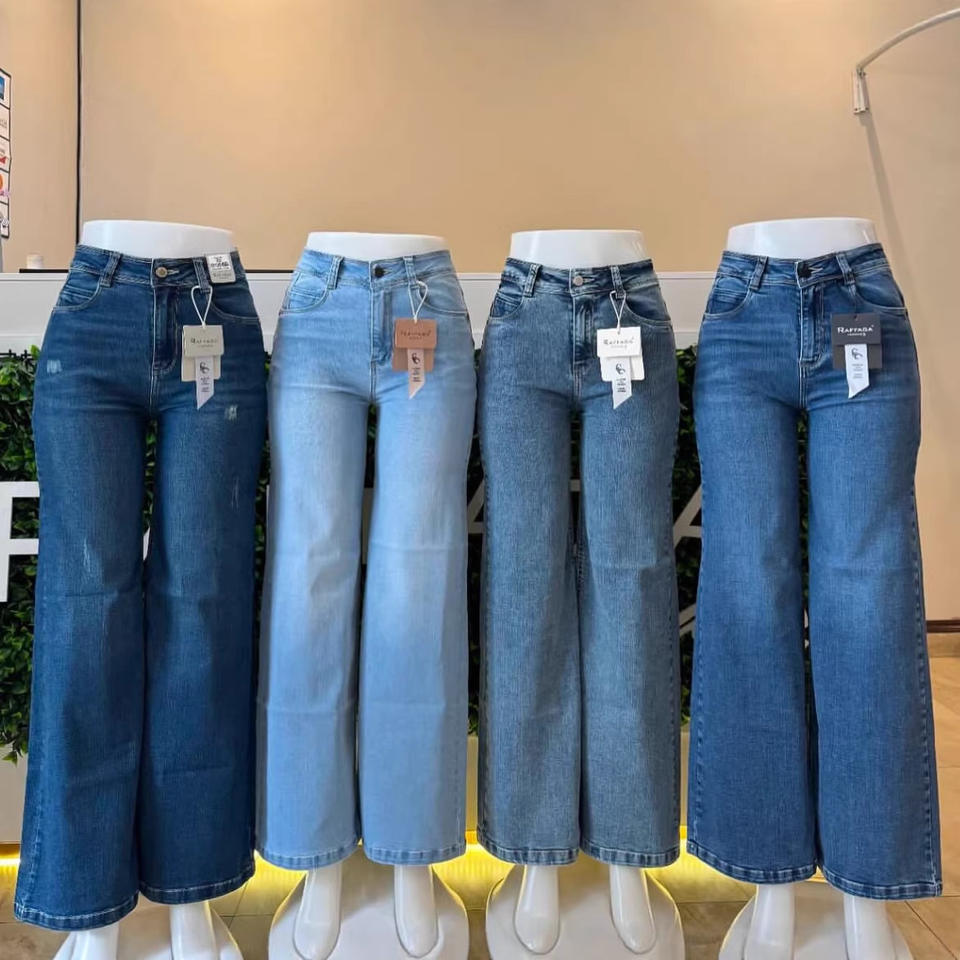 Jeans Cargo da Donna Invernali a Vita Media, Stile Americano Retrò, Pantaloni in Denim a Gamba Larga, Asciugatura Rapida, Spandex/Cotone