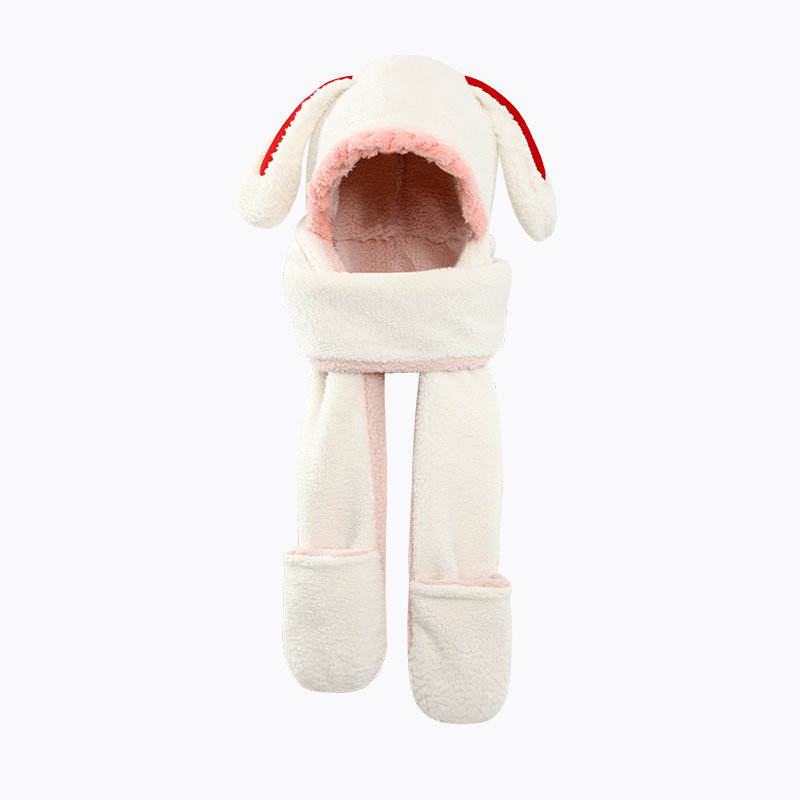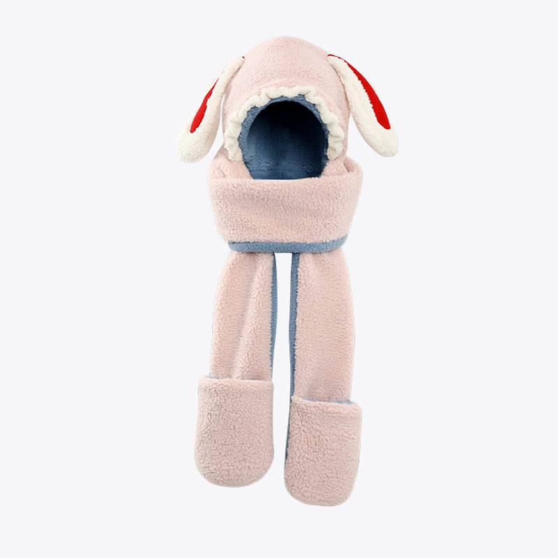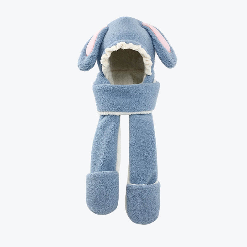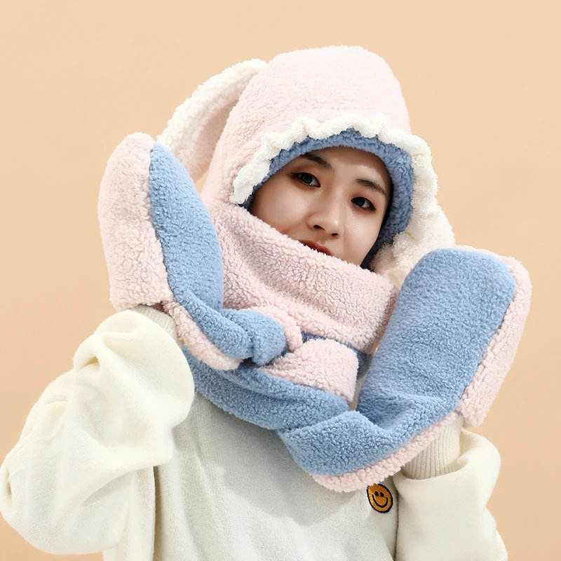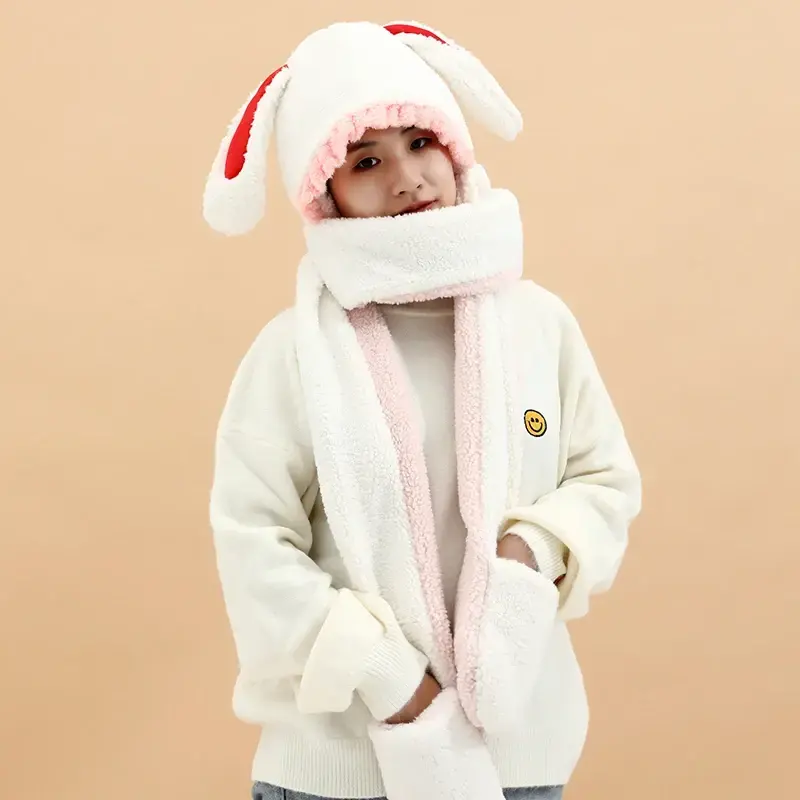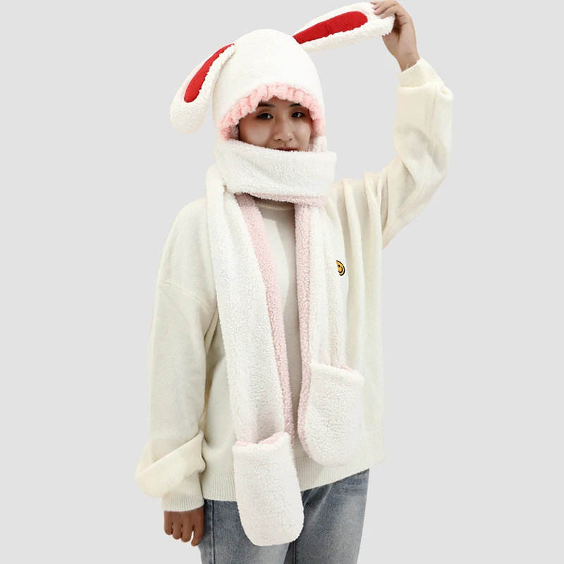 Set Invernale Multifunzionale da Donna con Cappuccio a Orecchie di Coniglio e Sciarpa Lunga, Cappello Elegante Lavorato a Mano in 100% Acrilico