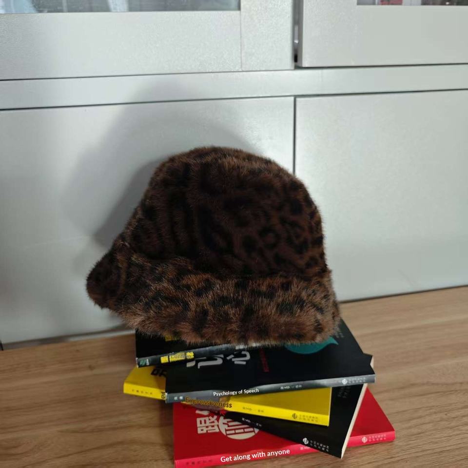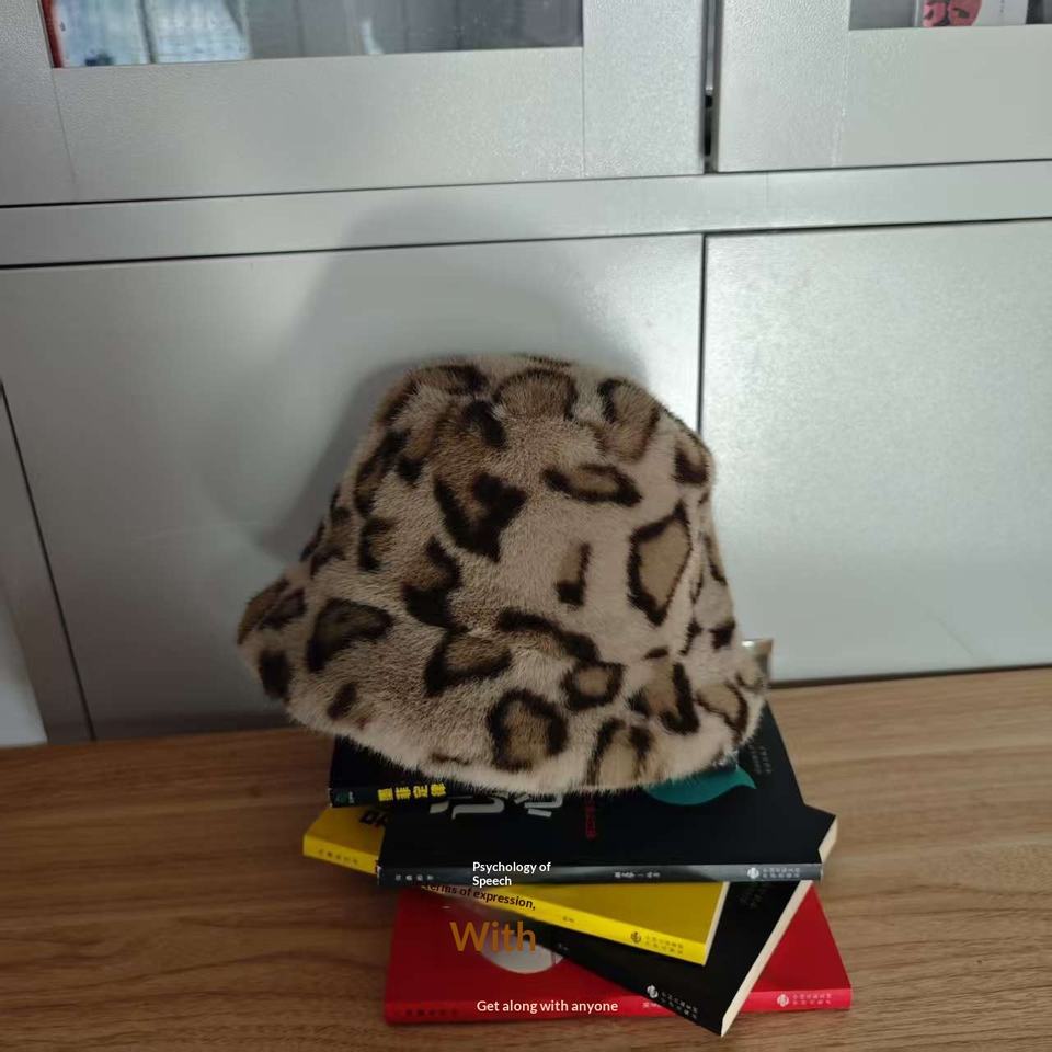 Cappello a Secchiello Invernale da Donna in Finta Pelliccia Leopardata con Bottone, Stile Giapponese e Coreano