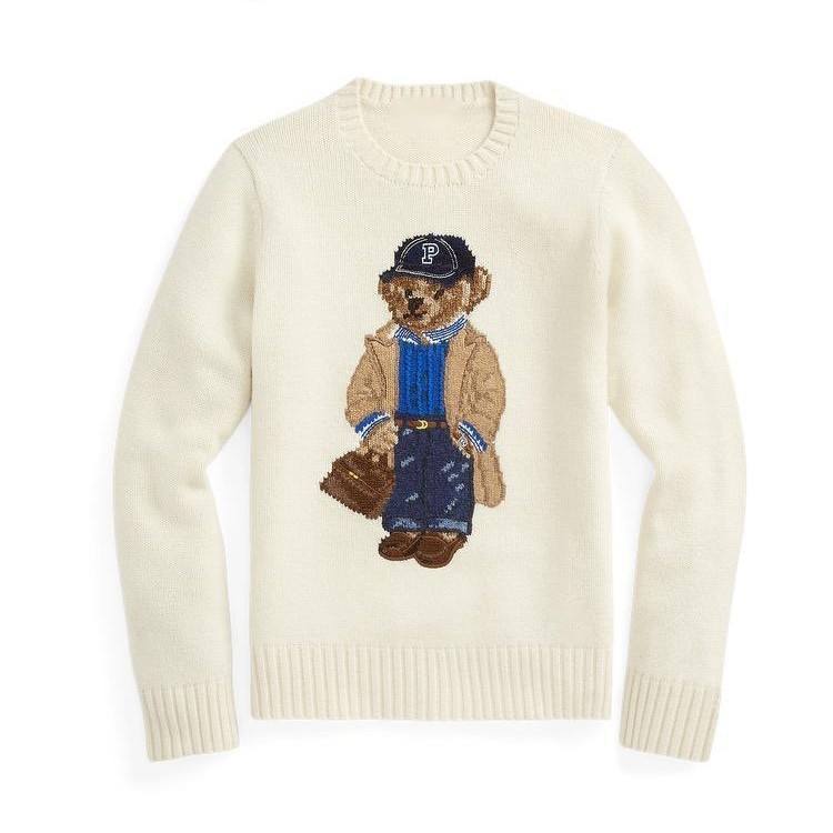 Maglione da donna in lana ricamato con motivo orso, maniche lunghe, maglia morbida di alta qualità stile casual