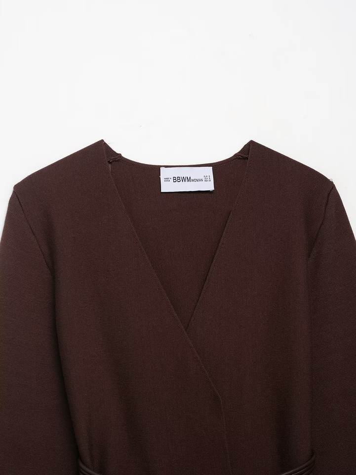 Women's autumn 2025 new fashion V-neck belt decorative knitted cardigan coat retro women's long-sleeved chic cardigan