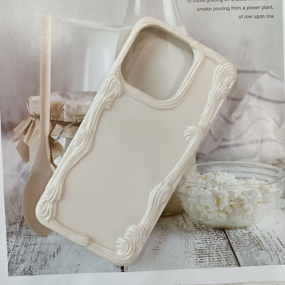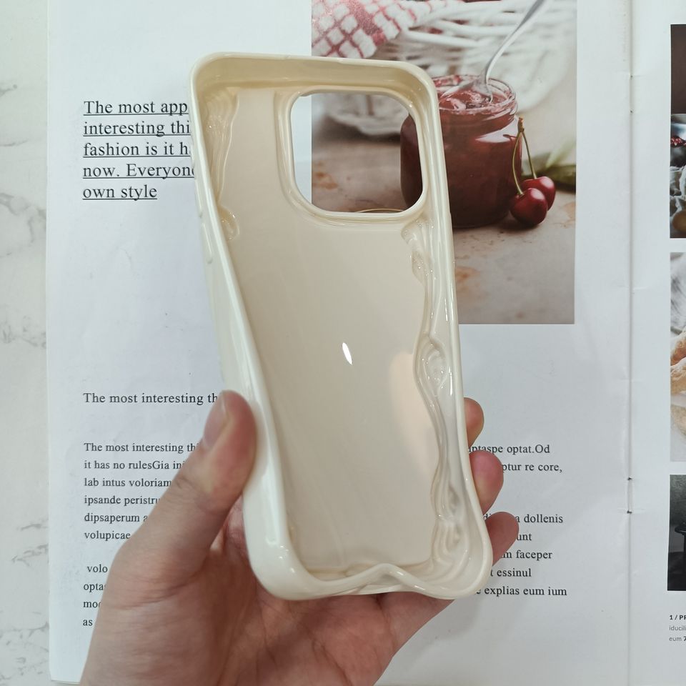 Custodia per iPhone 16 15 14 17 Pro Max da Donna, Stile Ondulato 3D, Protezione Antiurto, Colore Crema