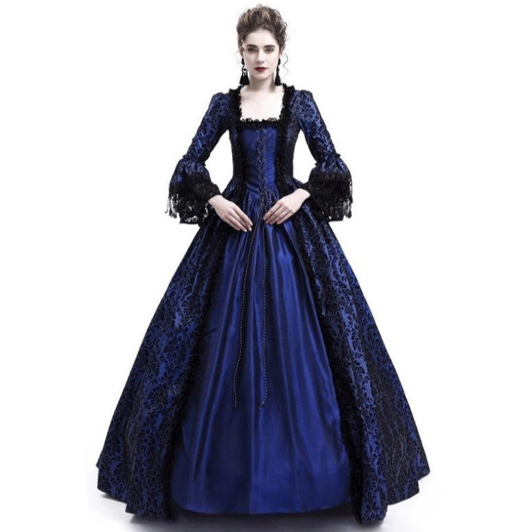 Women with Lace Horn Sleeve Cross-Border Import for Halloween European American Retro Medieval Court Dress