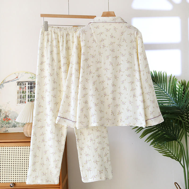 Womens Cotton Gauze Pajama Set Long Sleeve Button up Shirt and Pants 2 Piece Cute Printed Pj RUS Hot Sale Designer Custom OEM