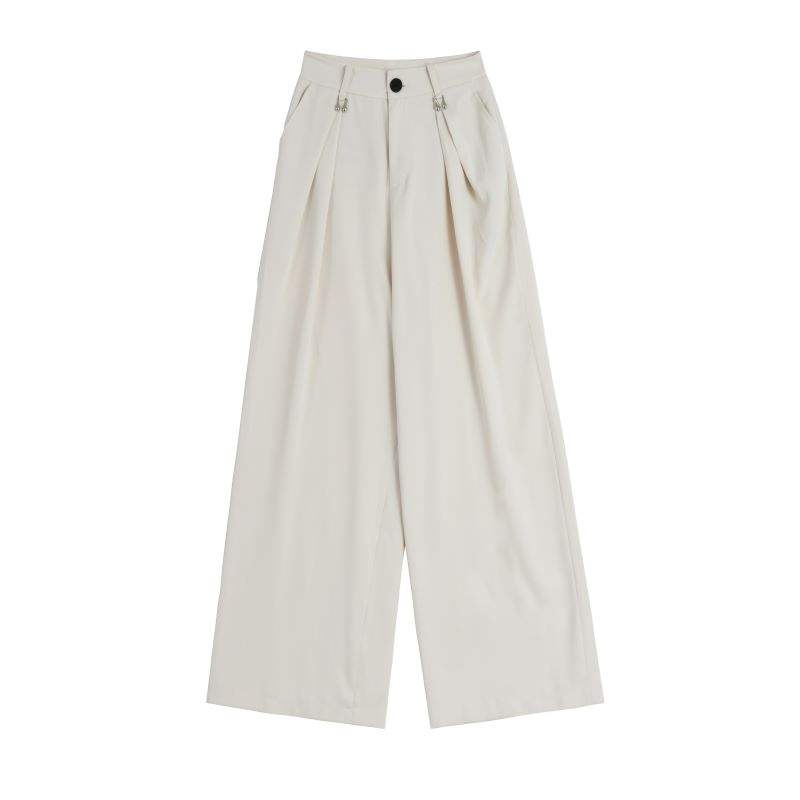 Womens Fold Pleated Wide Leg Pants High Waisted Loose Overalls Elegant Ladies Office Fit With Pockets Button up Trousers