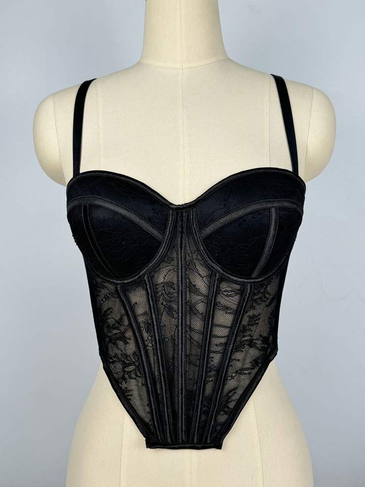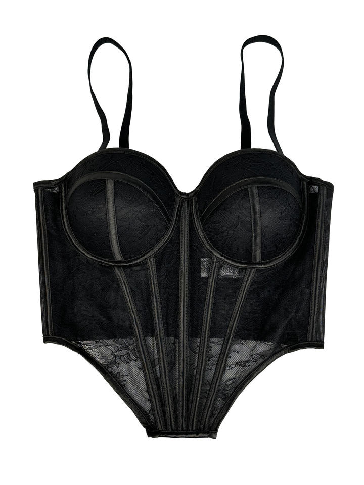 Top Corsetto da Donna Ispirato allo Stile Francese con Contrasto in Pizzo e Rete Floreale, Bustier con Stecche