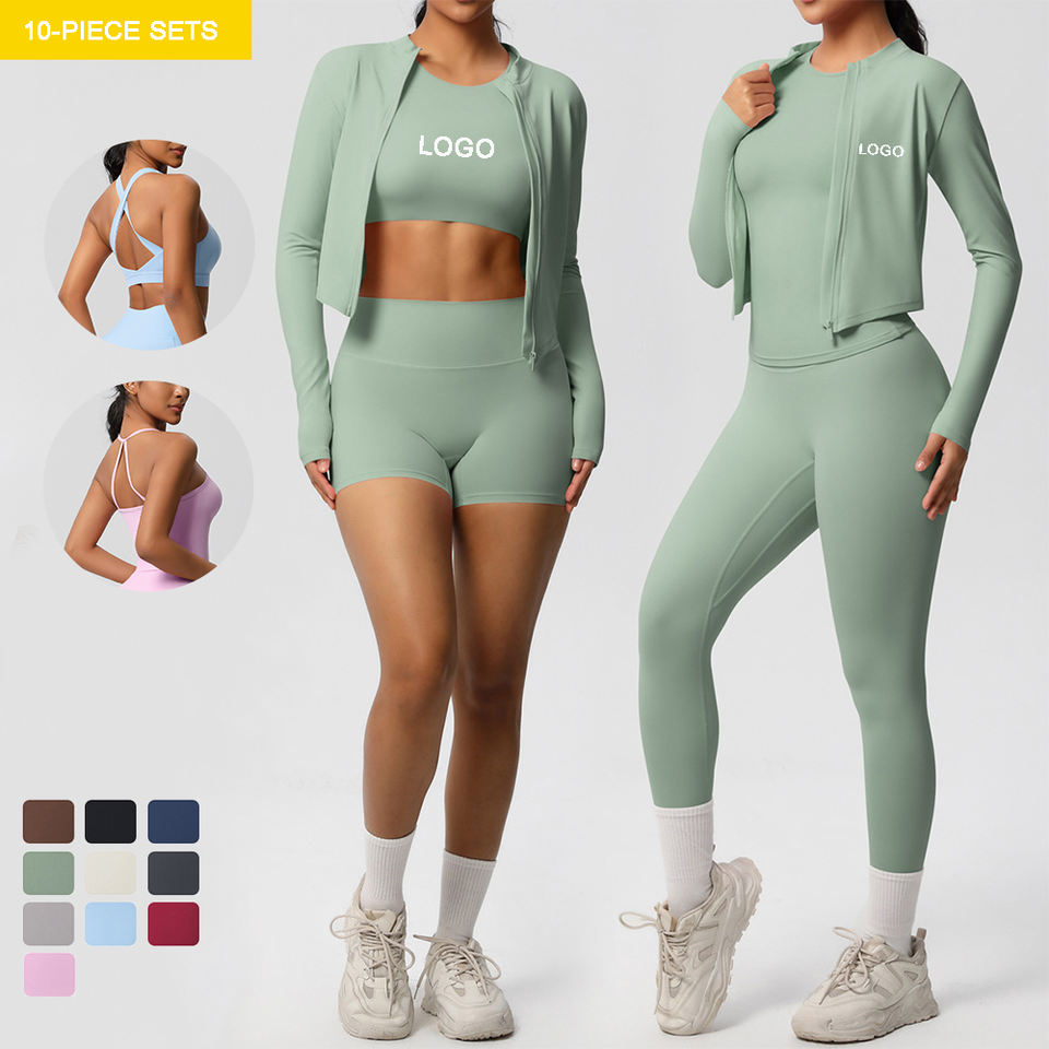 Set di allenamento da palestra da donna Pantaloncini da Yoga a vita alta 11 pezzo Leggings imbottiti reggiseno sportivo con Base a manica lunga con chiusura a maglia