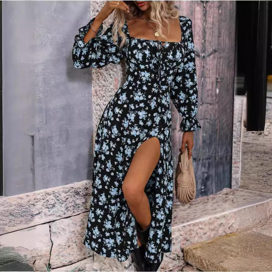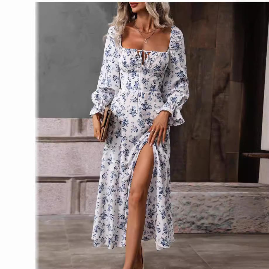 Womens Latest Fashion Clothing Trends Women's Summer Elegance Dresses New Floral Long Dress Ruffle Sleeve Dress