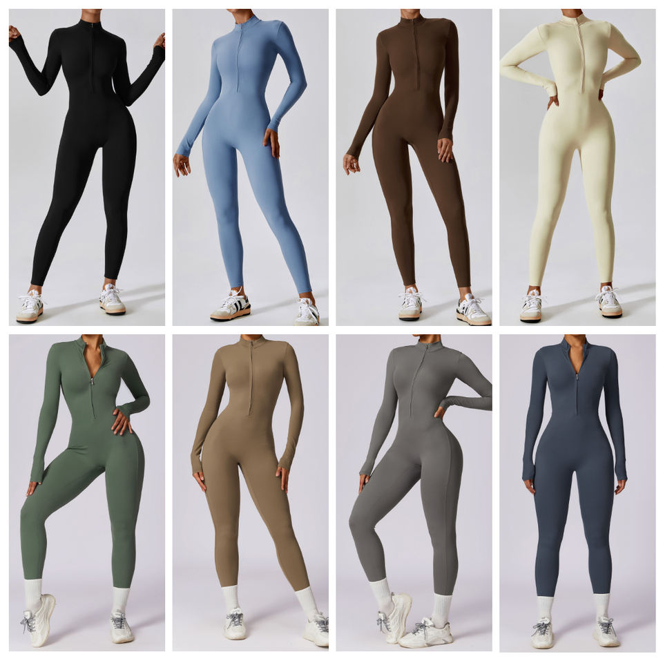 Womens Long Sleeve Lightweight Tight Bodysuit One Pieces Gym Fitness Sets High Elastic Activewear Yoga Jumpsuit Romper