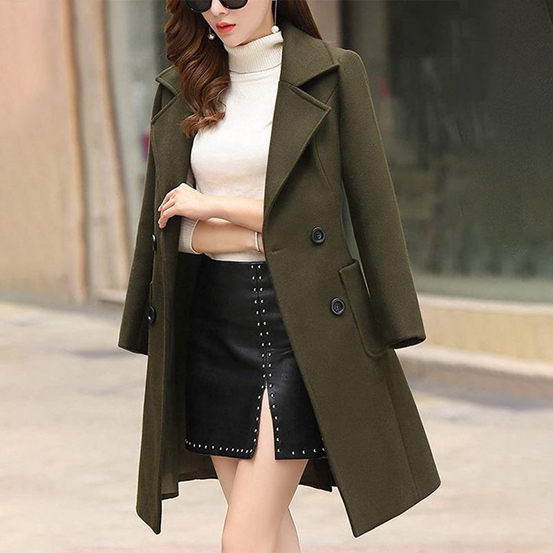 Womens Long Trench Coats Slim Fit Wool Peacoat Notched Collar Double Breasted Jacket Camel Overcoat Black Pea Coat