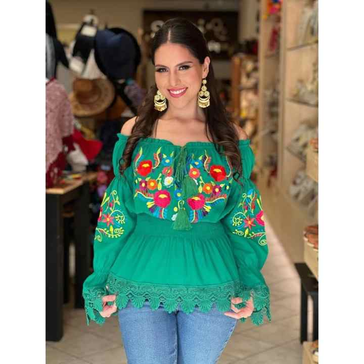 Camicetta da donna messicana floreale ricamata stile boho con spalle scoperte, top artigianale da contadina con orlo in pizzo