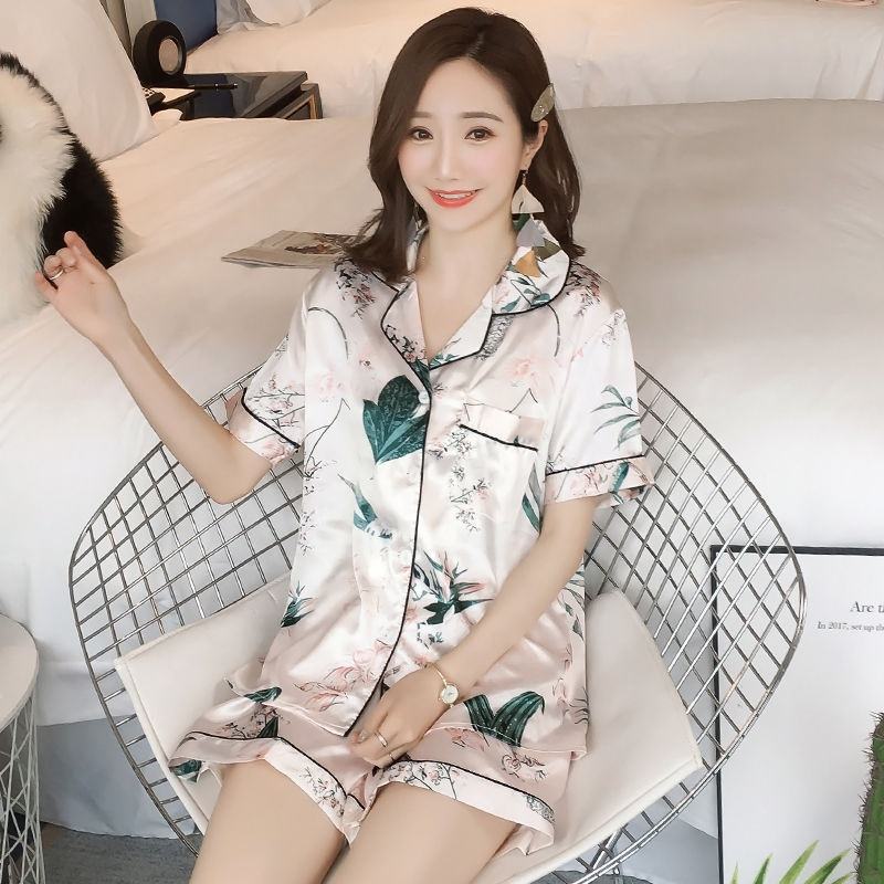 Set di pigiama in raso di seta da donna camicia a maniche corte XS-4XL pigiami floreali morbidi pigiami pigiami