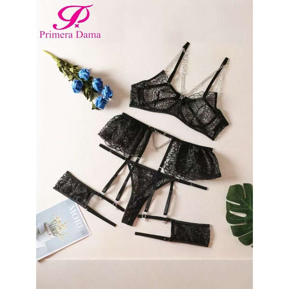 Da donna Sexy reggiseno a catena in metallo giarrettiera perizoma Set Lingerie regolabile con imbracatura commercio all'ingrosso esportazione G-String mutandine