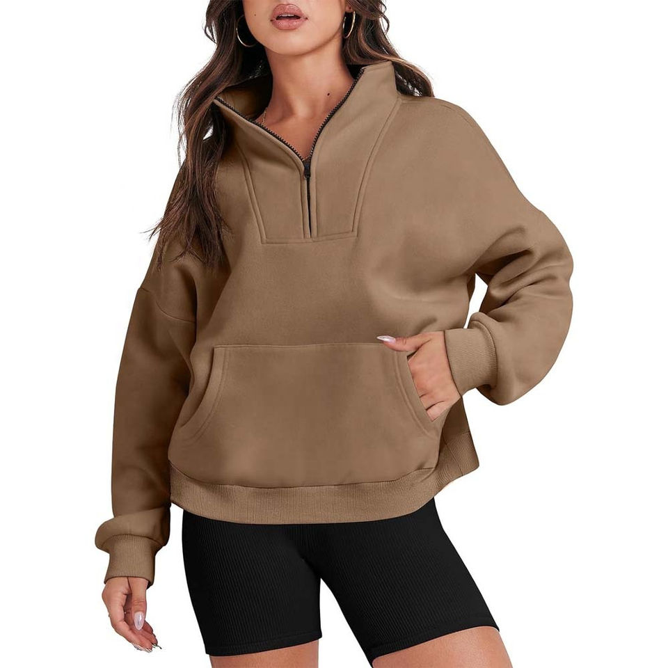 Felpe da donna a manica lunga oversize felpe Crop mezza Zip felpe con cappuccio da ragazza Pullover autunnale mezza Zip con OEM