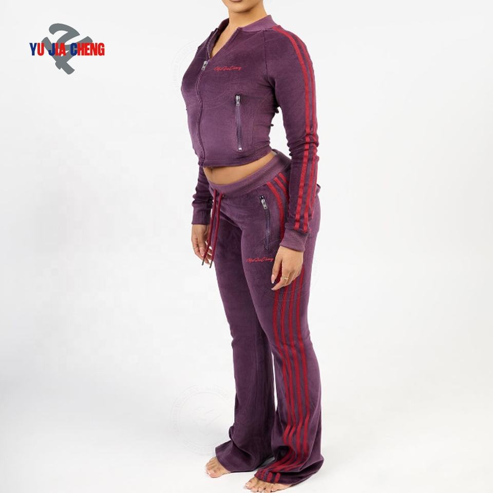 Completo da donna in velluto con giacca con cerniera e pantaloni a gamba dritta, stile vintage, a righe, ideale per ragazze alte