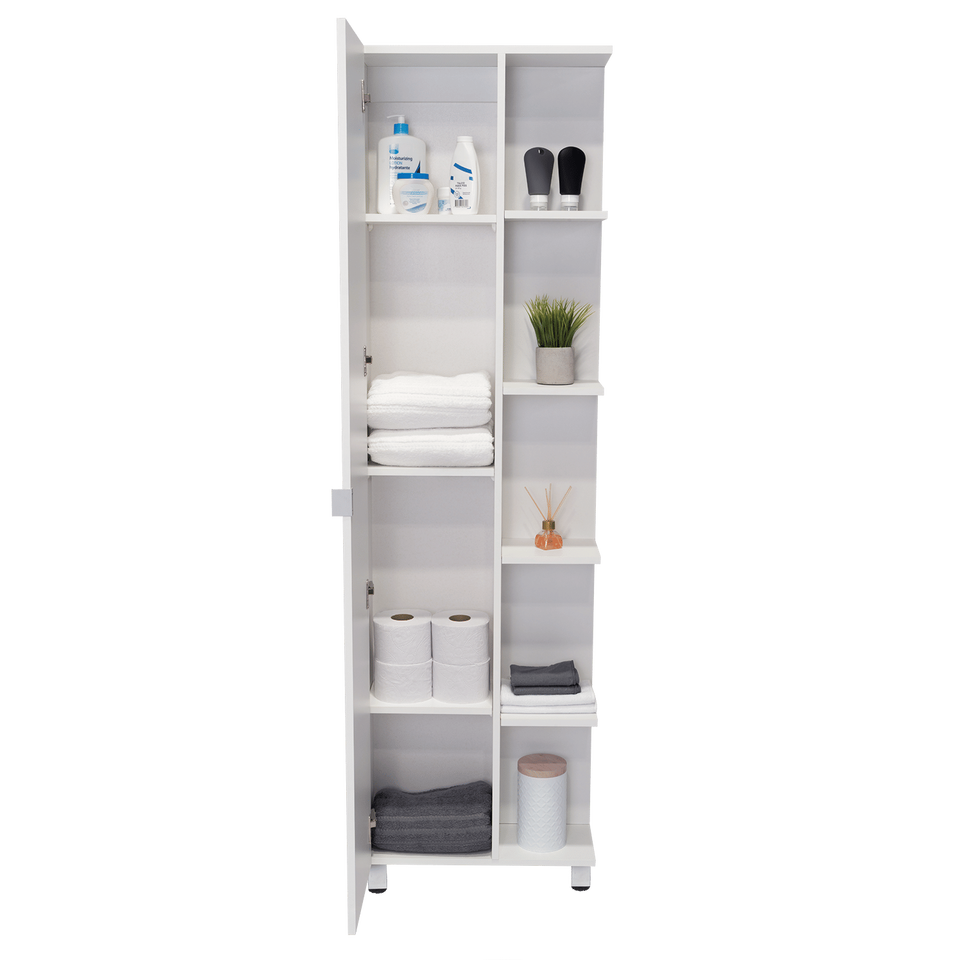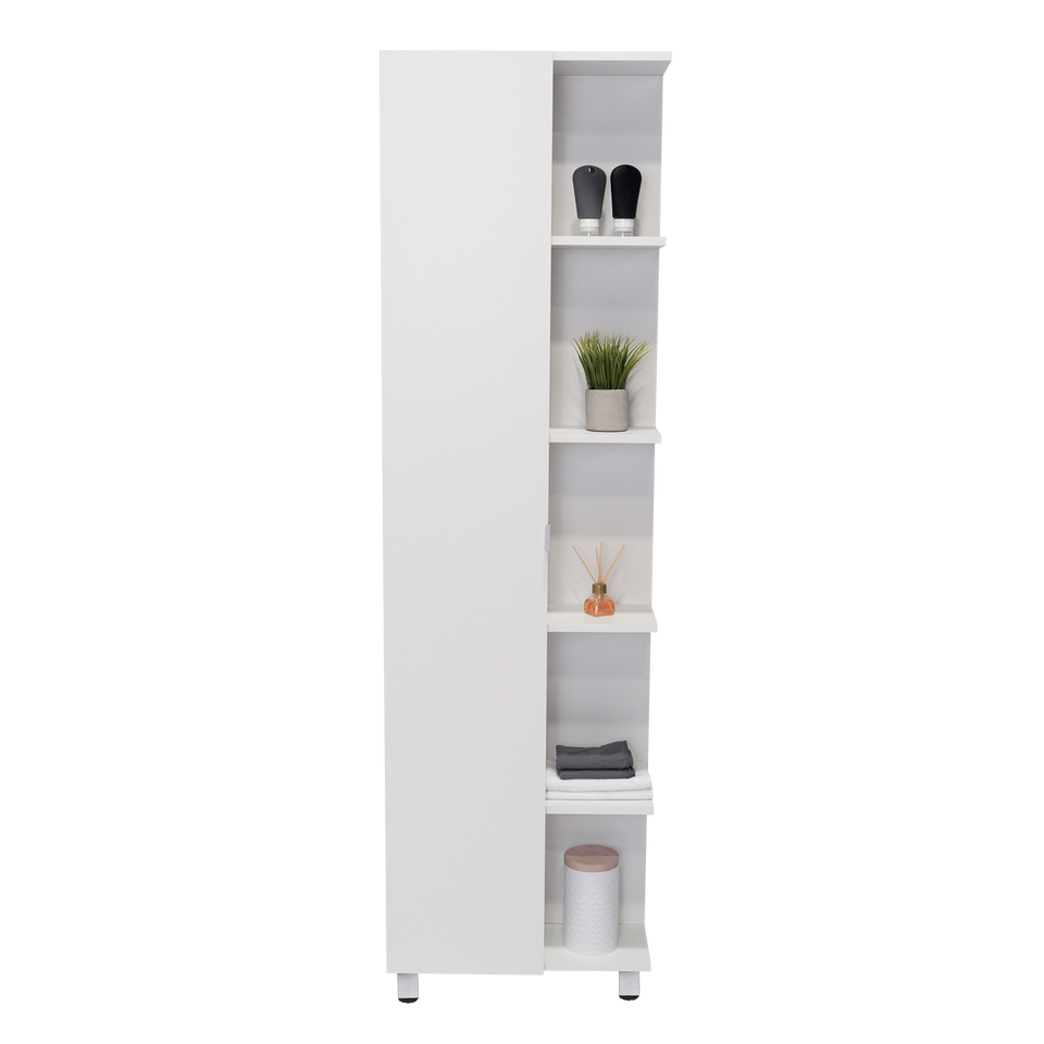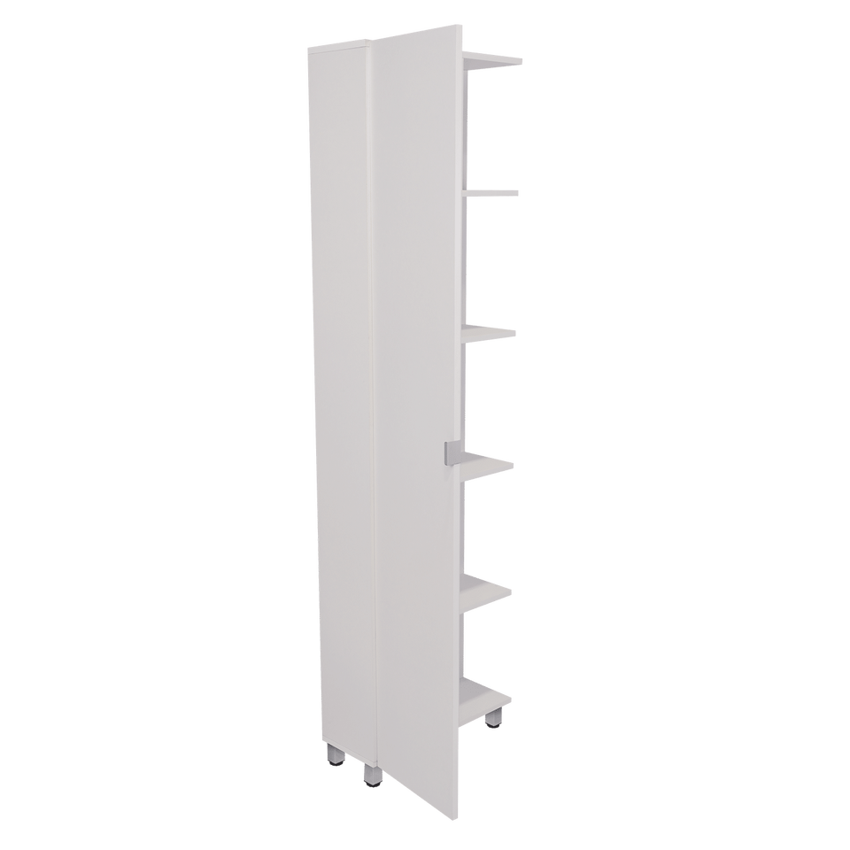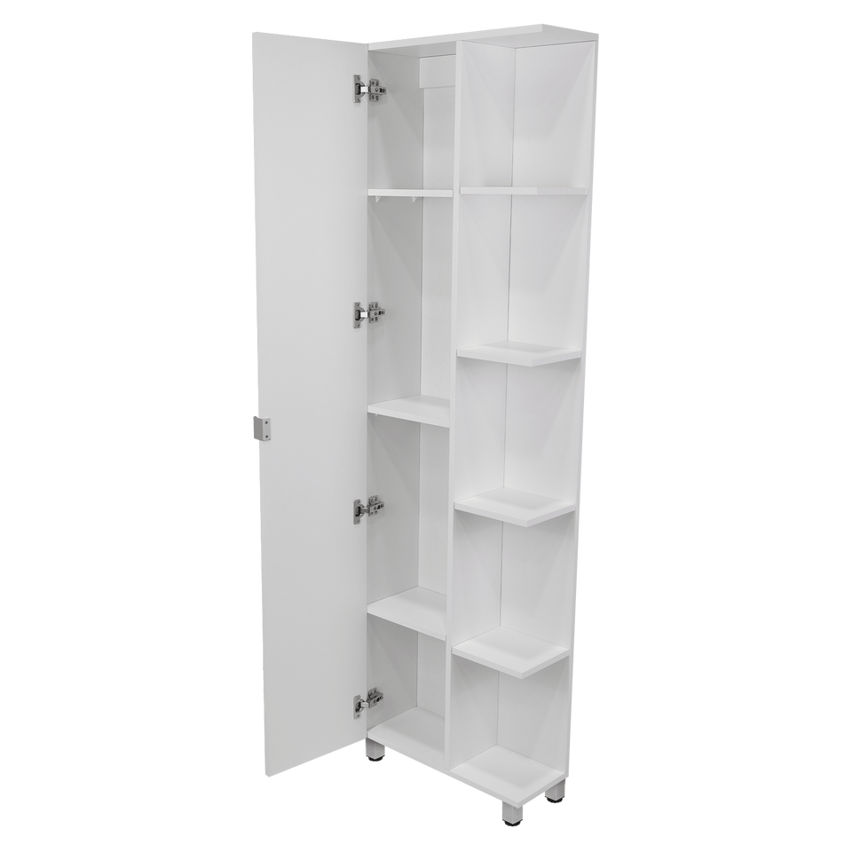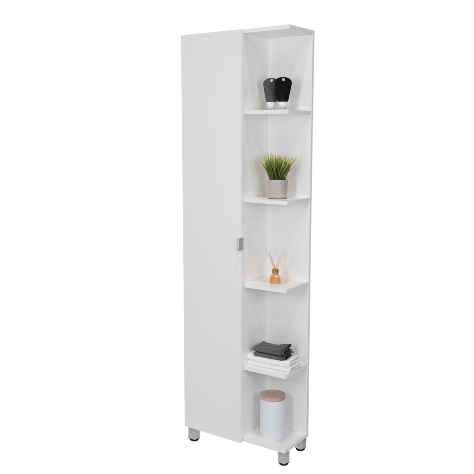 Mobiletto angolare Womppi a porta singola con cinque ripiani aperti, finitura bianca, per bagno