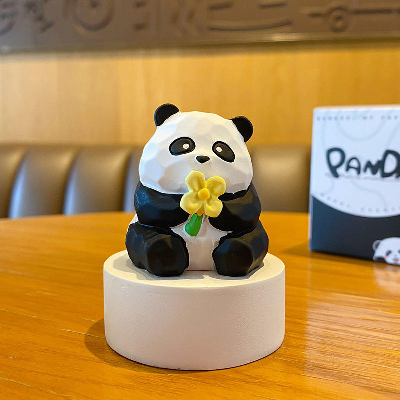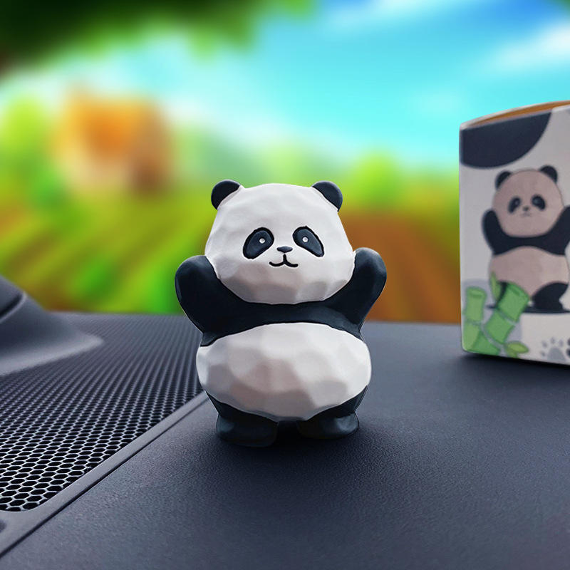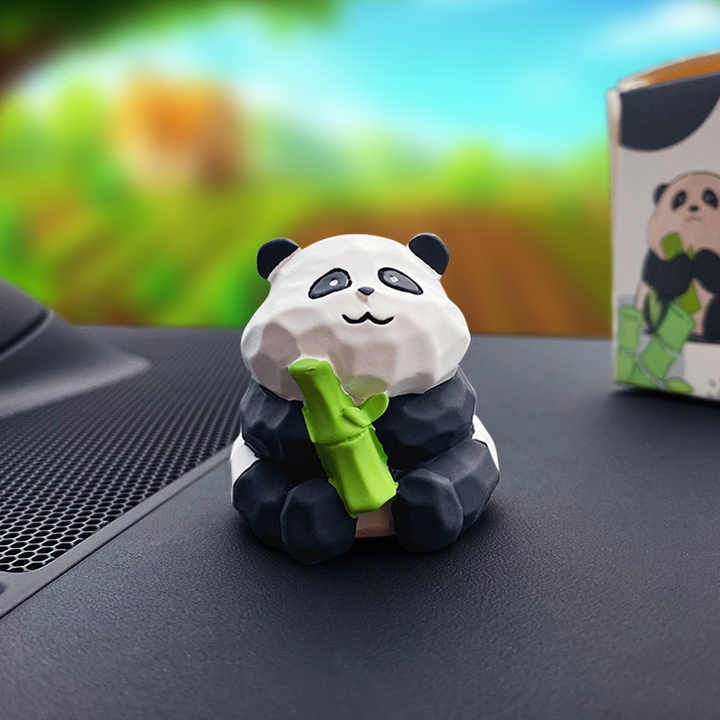 Statuetta Miniatura di Panda in Stile Intaglio del Legno, Creativa Bambola Cartoon per Decorazione Auto, Casa e Scrivania