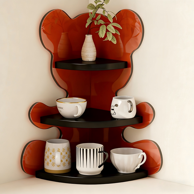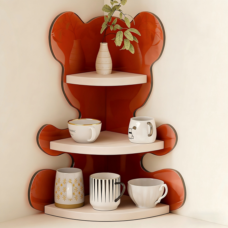 Portabicchieri in Legno a Forma di Orso, Organizzatore a Tre Livelli, Mensola Angolare per Scrivania, Porta Tazze da Caffè e Tè