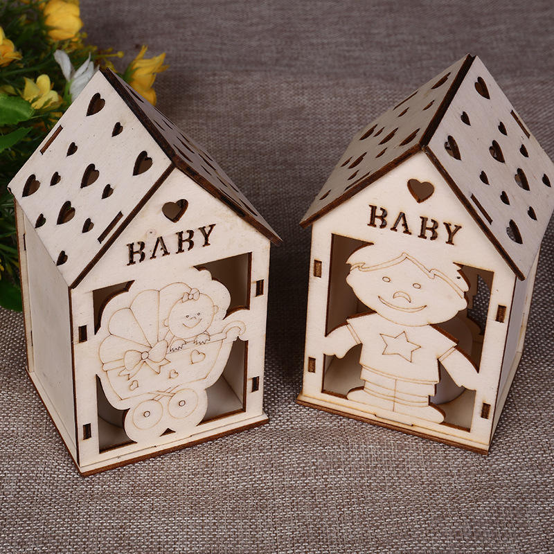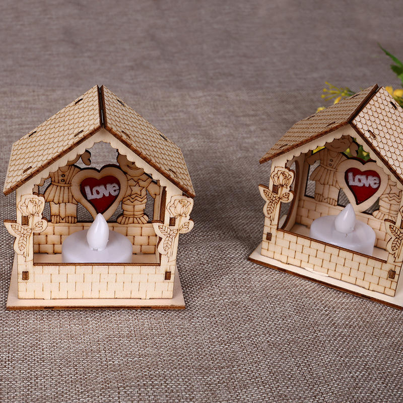Wood Craft Small Snowman House Luminous Lighting Ornaments Wooden Wedding Decoration