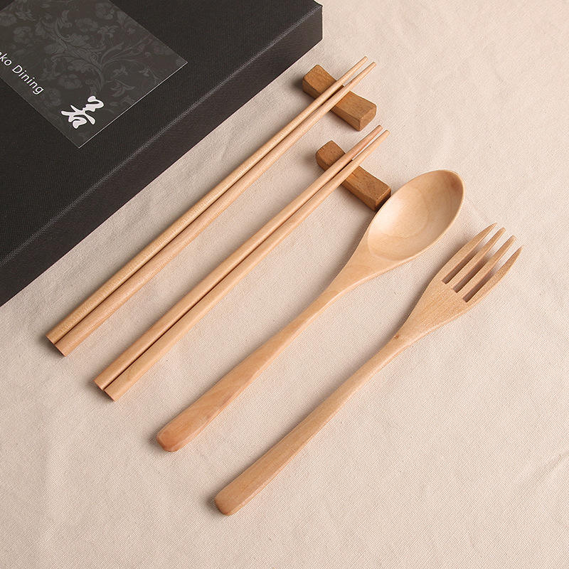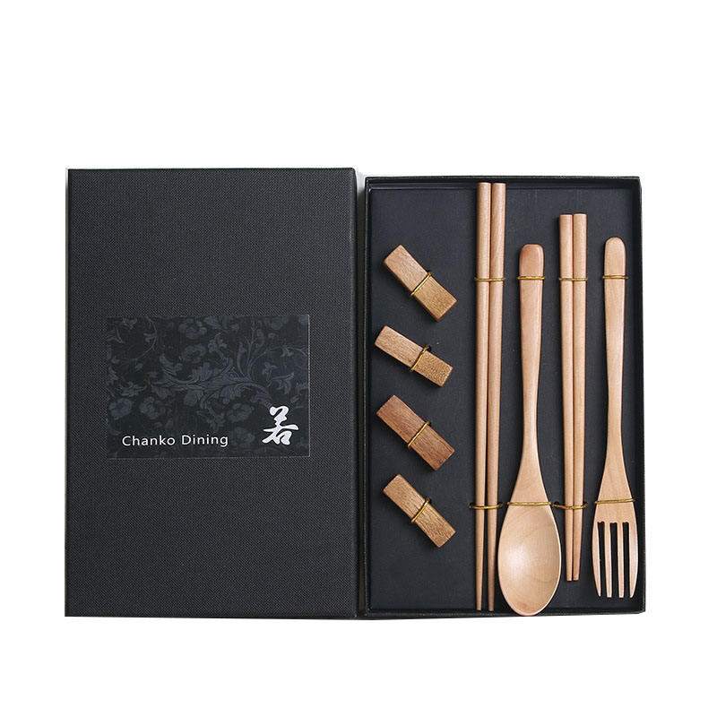 Set di scatole regalo per posate in legno bacchette resto, cucchiaio, forchetta, Set di bacchette con custodia
