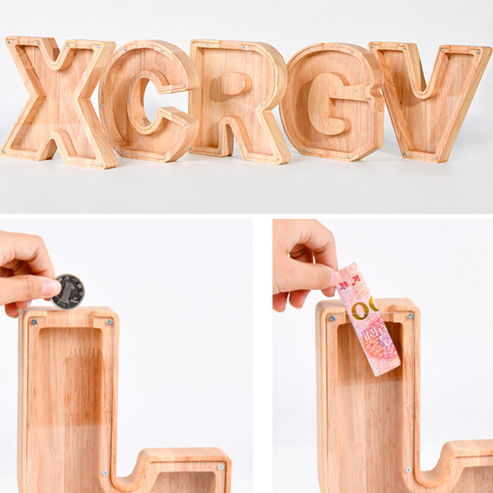 Salvadanaio in legno salvadanaio in legno lettere inglesi in legno salvadanaio con coperchio in acrilico trasparente