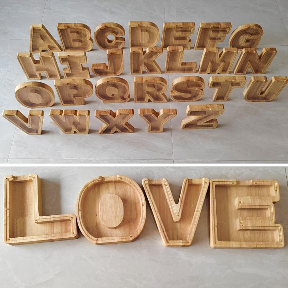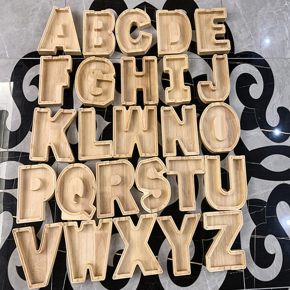 Legno Risparmio di Denaro Box Banca di Moneta Scatola di Legno Inglese Lettere Piggy Bank