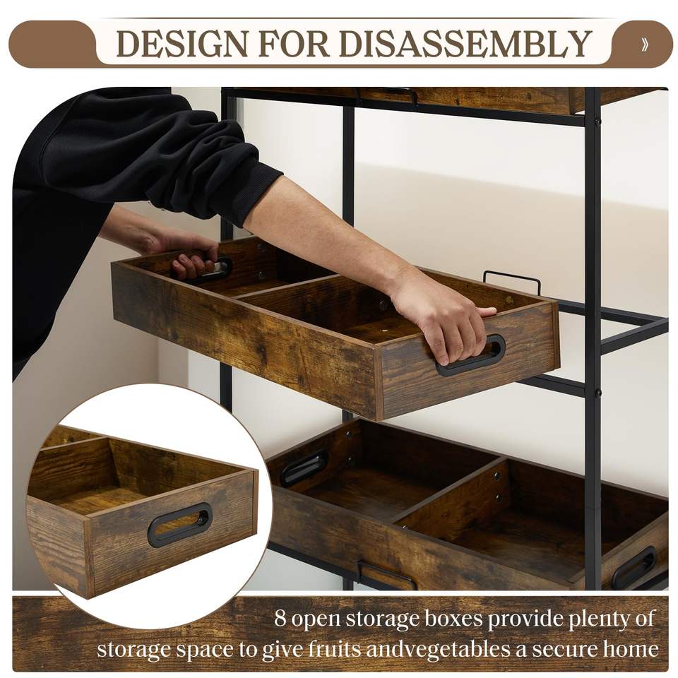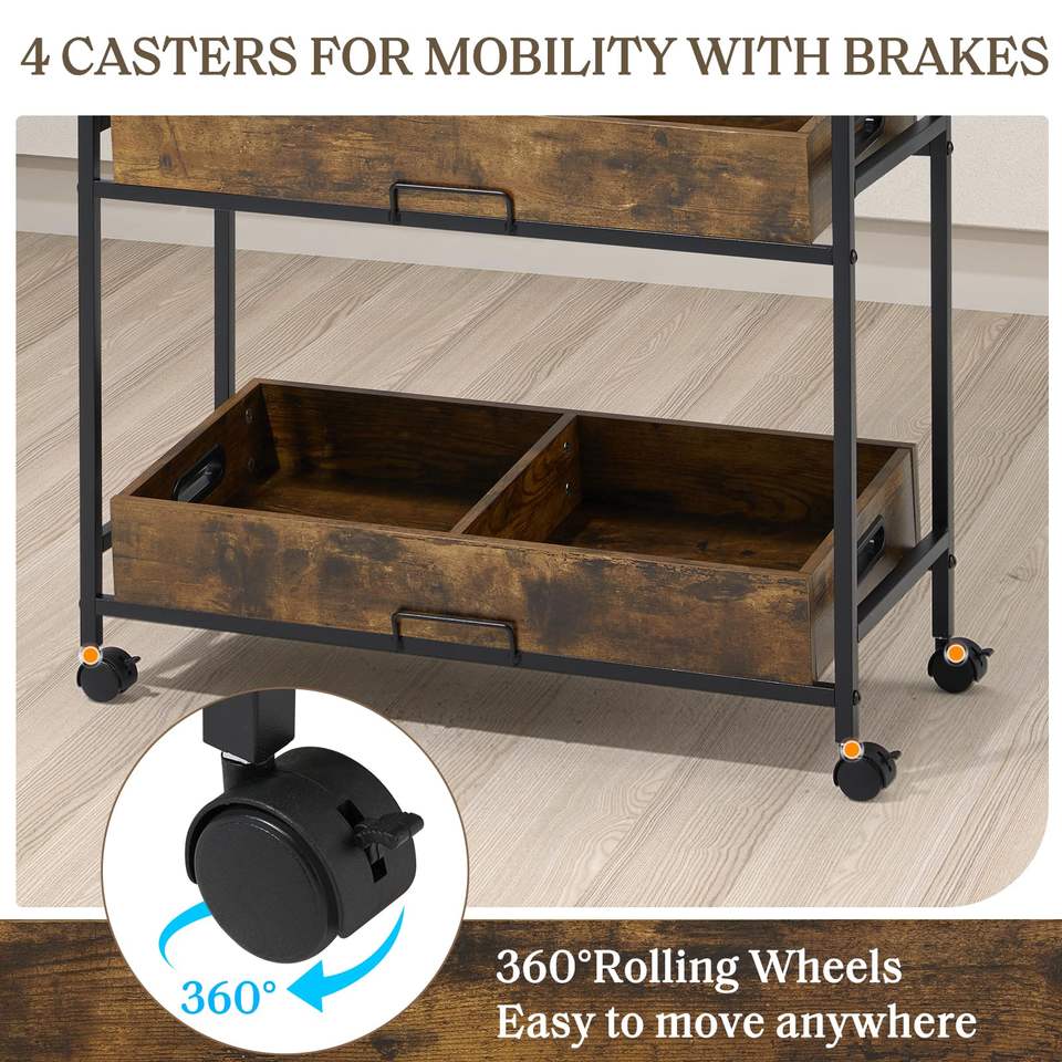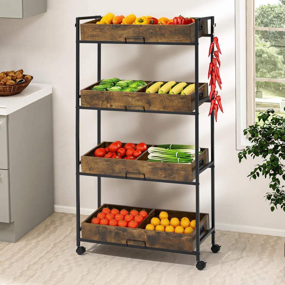 Scaffale in Legno, Marrone Vintage, con Ruote, per Cucina o Vetrine di Supermercato, Adatto per Librerie e Espositori per Hobby