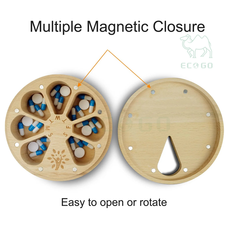 Nome del prodotto:Portapillole Portatile Giornaliero in Legno per 7 Giorni