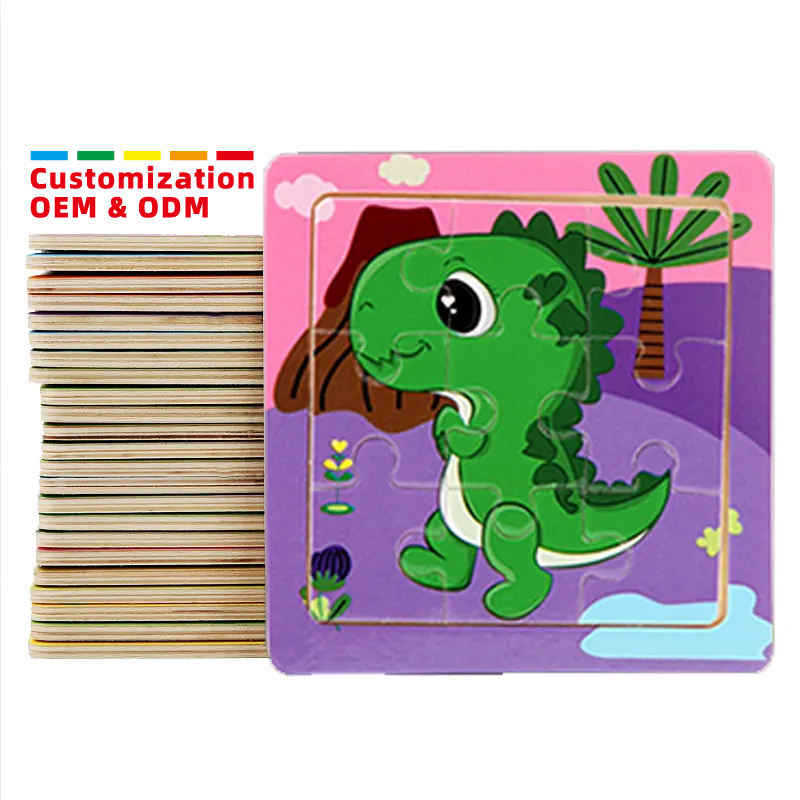 In legno 9 pezzi cartone animato dinosauro animale auto Puzzle educativo pendente per bambini giochi Borad giochi per bambini ragazzi ragazze