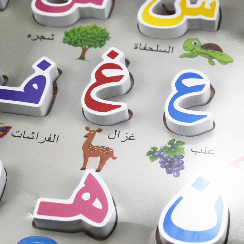 Arabi di legno di Puzzle di Alfabeto Lettere Del Bambino Puzzle di Legno giocattoli Per Bambini di Apprendimento Precoce Giocattoli Educativi Musulmano per I Bambini