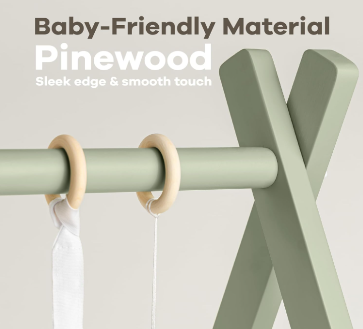 Wooden Baby Play Gym Natural Finish Pinewood Baby Activity Gym with 5 Sensory Hanging Toys