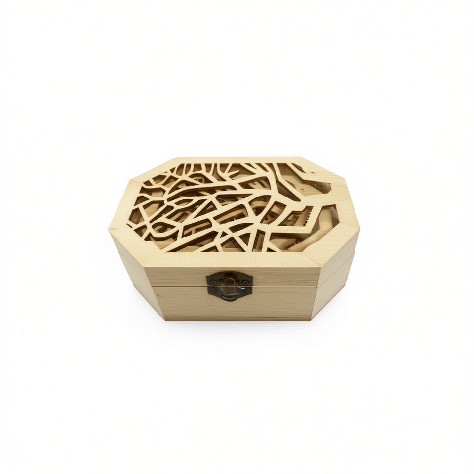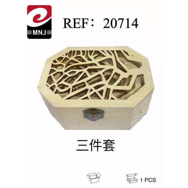 Wooden Box Three Piece Set Octagonal Carved Lid Storage Decorative Box 1 Pcs