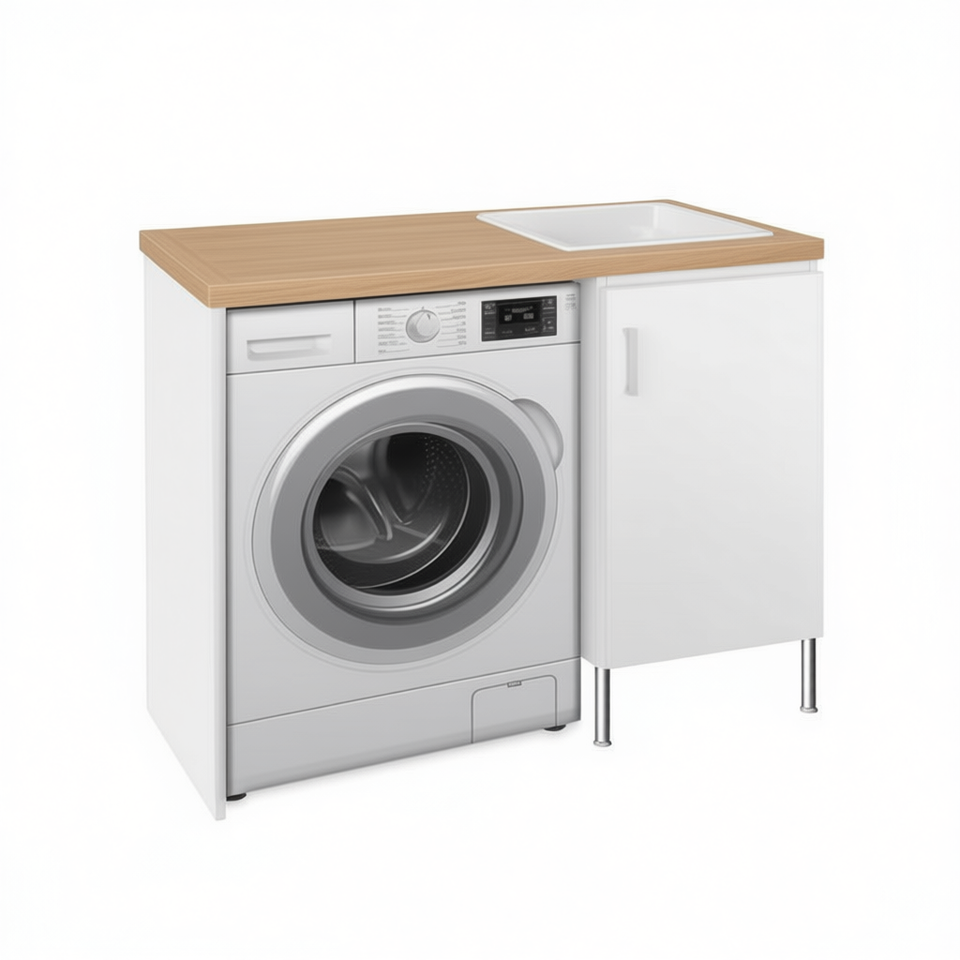 Mobile in legno con lavello e copertura per lavatrice 60 x 109 x H.90 cm, vasca a sinistra