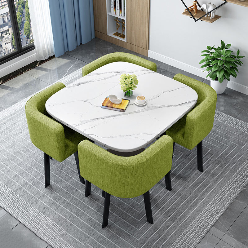 Set Tavolo e Sedie in Legno per Caffetteria, Set da Pranzo Quadrato a 4 Posti con Cuscini, Arredamento Personalizzabile per Ristoranti