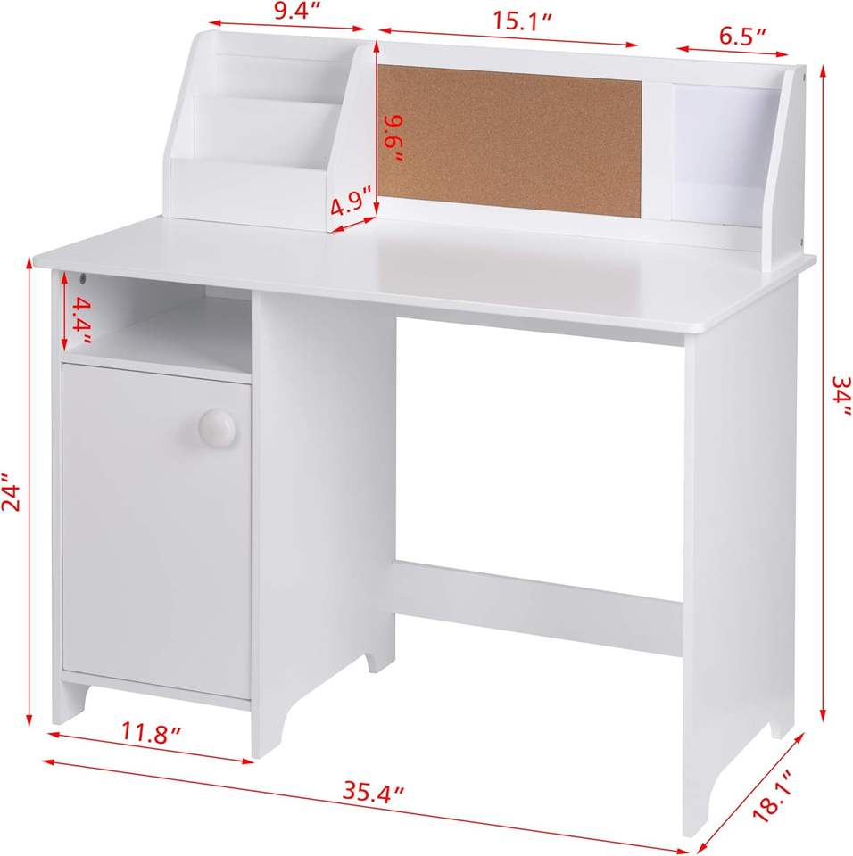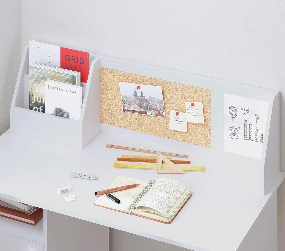 Banco di studio per bambini in legno con una casetta e armadietto adatto a ragazze e ragazzi di 3-8 anni per piccoli spazi bianchi